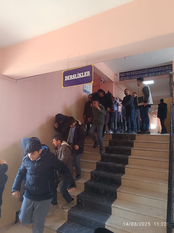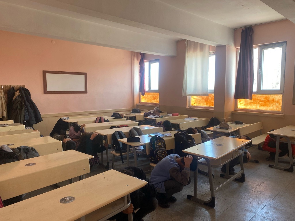 Bu kapsamda okulumuzda deprem farkındalığı oluşturmak için tatbikat yapıldı.